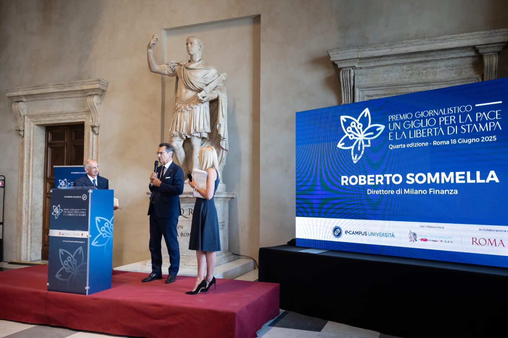 MILANO (ITALPRESS) – Il direttore di Milano Finanza, Roberto Sommella, ha ottenuto un riconoscimento speciale nell’ambito del Premio Giornalistico “Un Giglio per la Pace e la libertà di stampa”, organizzato dall’Università E-Campus.