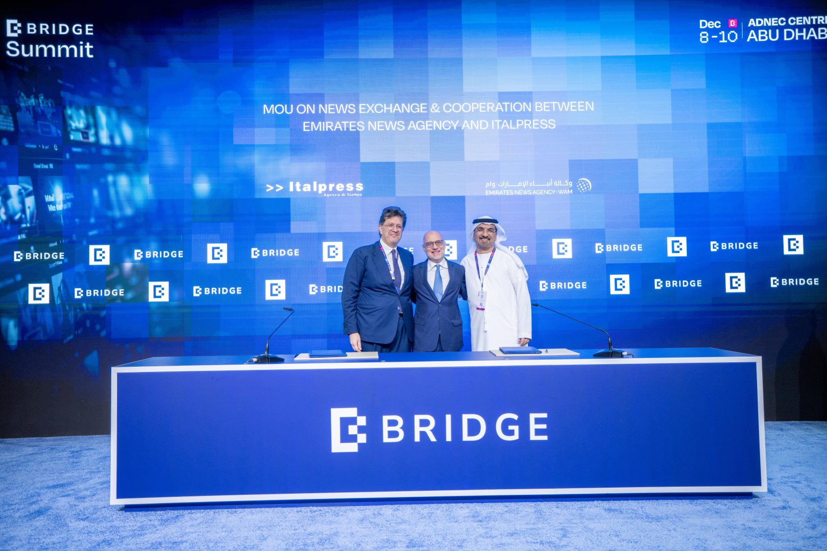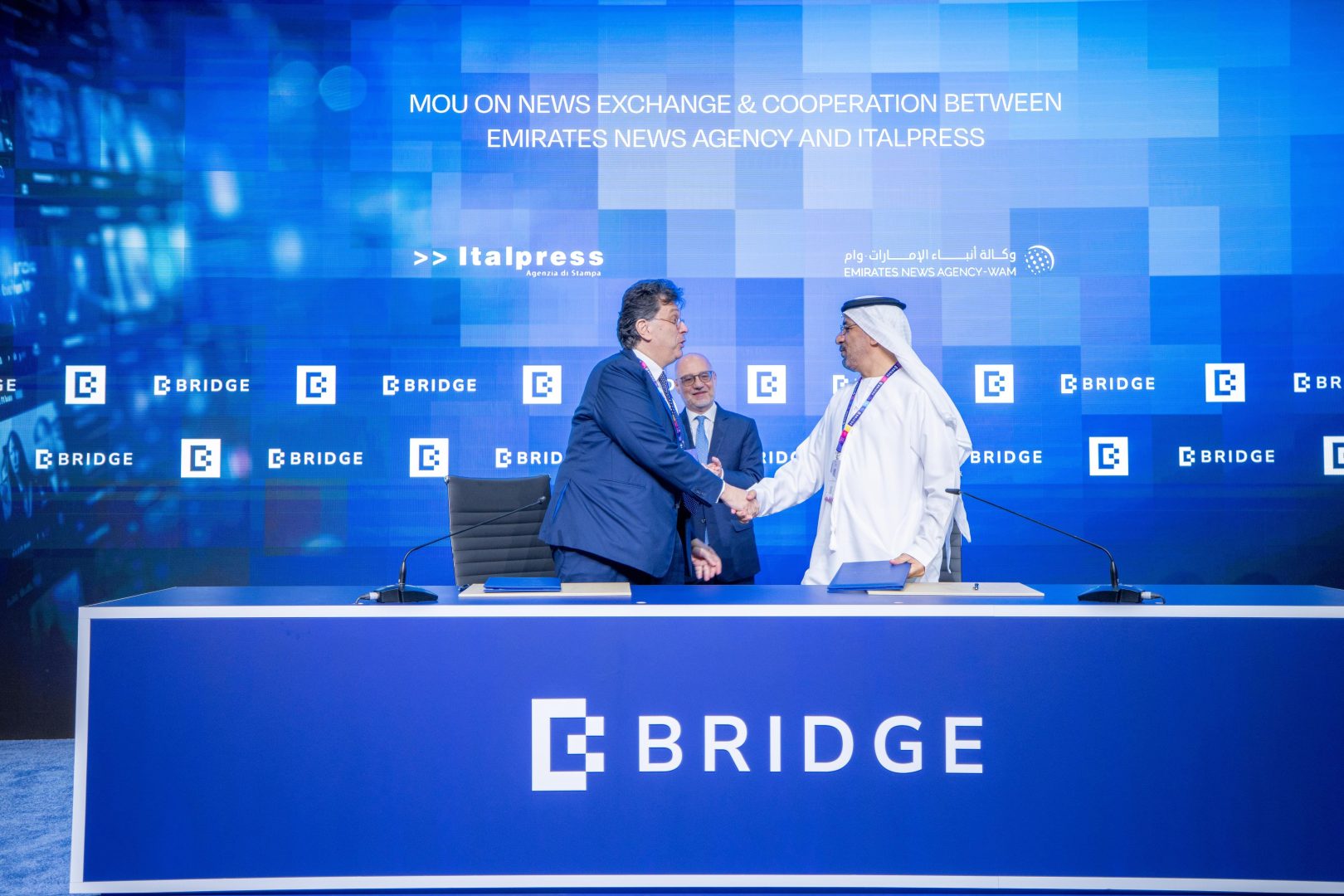 ABU DHABI (EMIRATI ARABI UNITI) (ITALPRESS) – Un’altra prestigiosa partnership per l’Agenzia di Stampa Italpress, che prosegue il suo processo di internazionalizzazione. Nell’ambito del BRIDGE Summit di Abu Dhabi, infatti, è stato siglato un importante accordo di partnership con l’agenzia di stampa emiratina Emirates News Agency – WAM, leader nell’informazione in tutta l’area del Golfo Arabo.