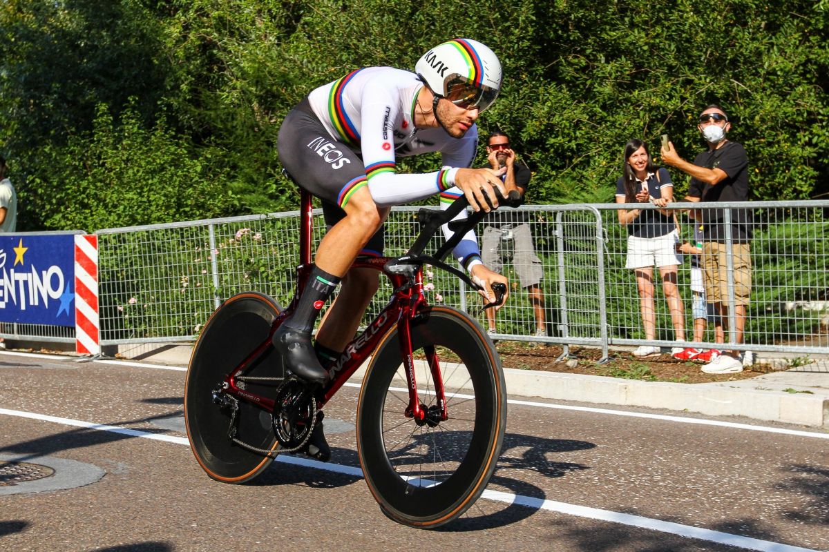 ROMA (ITALPRESS) – Filippo Ganna si è confermato campione del mondo di ciclismo a cronometro. L’azzurro, 25enne, nato a Verbania, tesserato Ineos, si è imposto nella prova contro il tempo Elite del Campionato iridato su strada, in scena nelle Fiandre. Ganna, già iridato nel 2020, ha chiuso gli odierni 43.3 chilometri, completamente pianeggianti, fra le spiagge di Knokke-Heist e Bruges, in 47’47″83. Alle spalle dell’italiano, secondo e terzo posto per due atleti del Belgio, ovvero Wout Van Aert, del team Jumbo Visma, che ha chiuso in 47’53″20, staccato di 5″37, e Remco Evenepoel, del team Deceuninck QuickStep, in 48’31″17, distanziato da Ganna di 43″34.