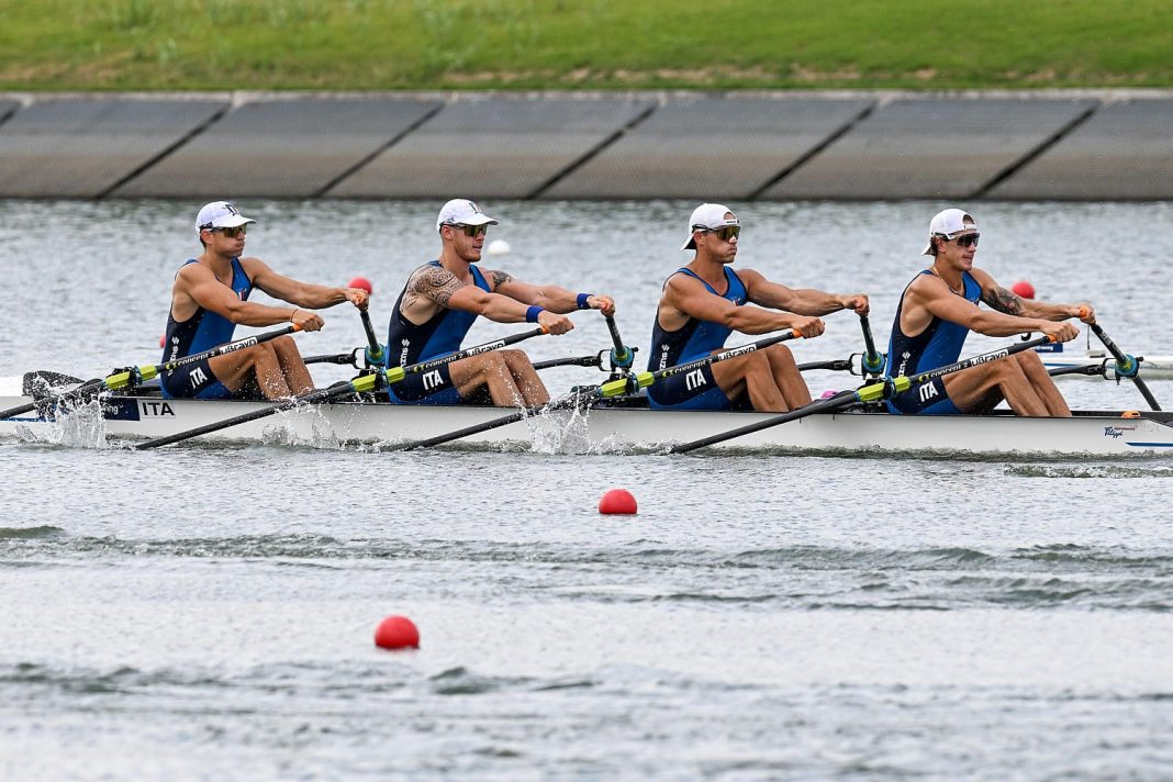 “Da Plovdiv 2018 a Shanghai 2025, oggi a vincere siamo tre quarti dell’equipaggio di allora. Non è più con noi Filippo Mondelli: a lui apparteneva la bandiera che oggi abbiamo esposto in premiazione, il nostro pensiero va a lui, ai suoi genitori Monica e Guido, a sua sorella Elisa. Qui in questa calda Shanghai ci siamo presi questo oro lavorando tutti quanti in modo coeso e produttivo negli ultimi mesi. La differenza? L’esperienza e la capacità di adattarsi alle condizioni, caldo o freddo, vento a favore o contro, che abbiamo incontrato qui”. Così Luca Rambaldi. A fargli eco Luca Chiumento: “Primo oro mondiale in categoria Senior, faticherò a dimenticarlo. La gara è andata alla grande, abbiamo sviluppato la strategia prefissata. Siamo usciti molto veloci in partenza, siamo rimasti molto freddi sul passo e abbiamo avuto lucidità nei momenti chiave della gara come gli ultimi 500 metri quando gli inglesi ci hanno attaccato. L’abbiamo gestita molto bene. Abbiamo dimostrato di avere molta coesione e grande esperienza: condividere il podio con Luca, Giacomo e Andrea è speciale”.