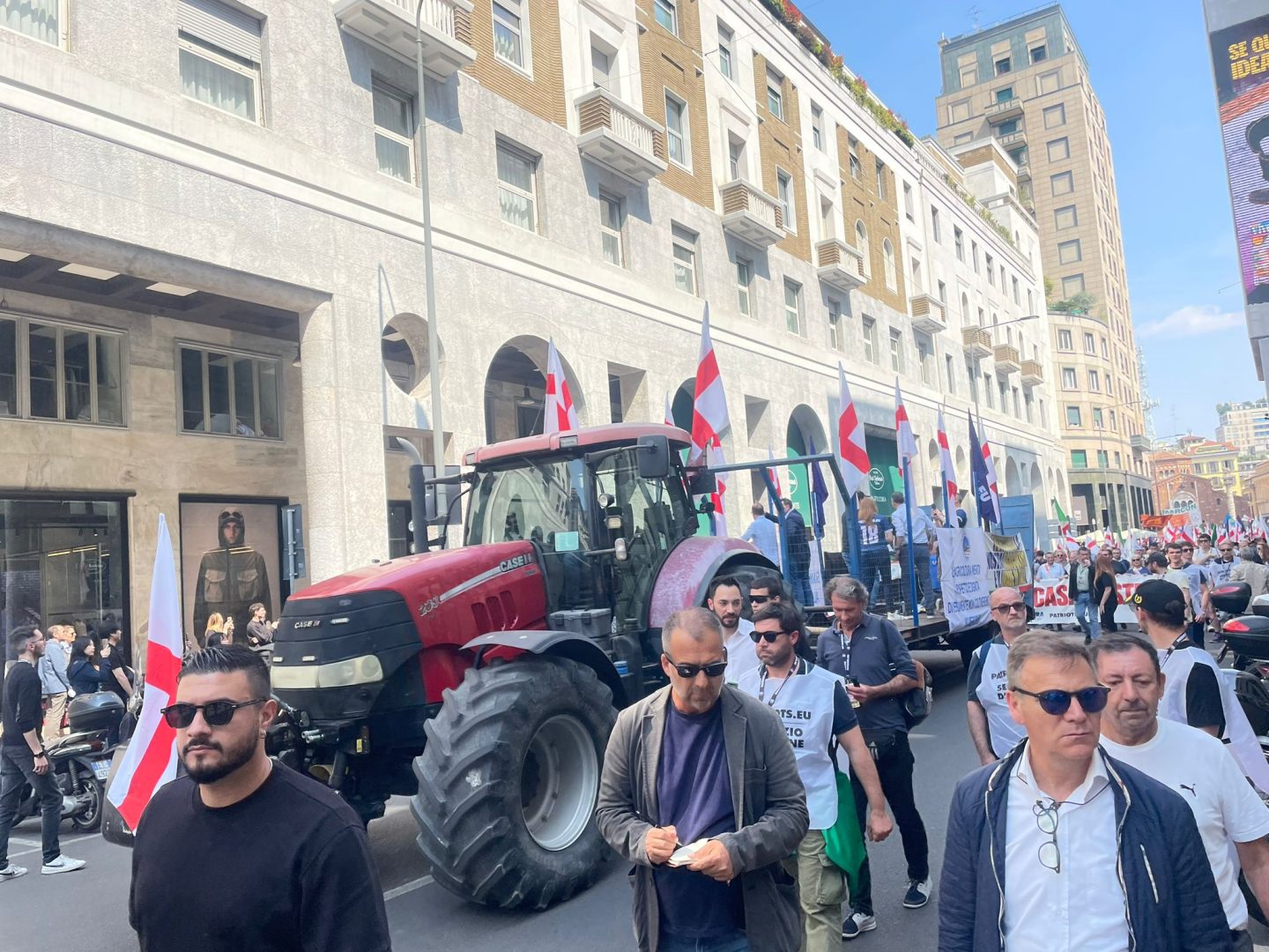 Il corteo dei Patrioti europei, composto da circa 2mila persone e partito da Porta Venezia alle 14.10, era in precedenza arrivato in piazza Duomo, dove erano già presenti circa 2mila persone. Presenti al corteo diversi sindaci e governatori, che hanno sfilato in testa con la fascia “padroni in casa nostra” ed esponenti del Carroccio come il capogruppo in Senato, Massimiliano Romeo, e la vicesegretaria Silvia Sardone. Sempre in testa del corteo un trattore e un cartello con la scritta: “L’agricoltura merita rispetto e dignità, diversamente non coltiveremo! No al Mercosur!”. Dalla folla si sono levati diversi cori come “Fuori tutti i clandestini”, “L’Europa cristiana, mai musulmana” e “Senza paura padroni a casa nostra”. Quando il corteo è passato davanti a Palazzo Marino, sede del Comune di Milano, si è levato qualche fischio.