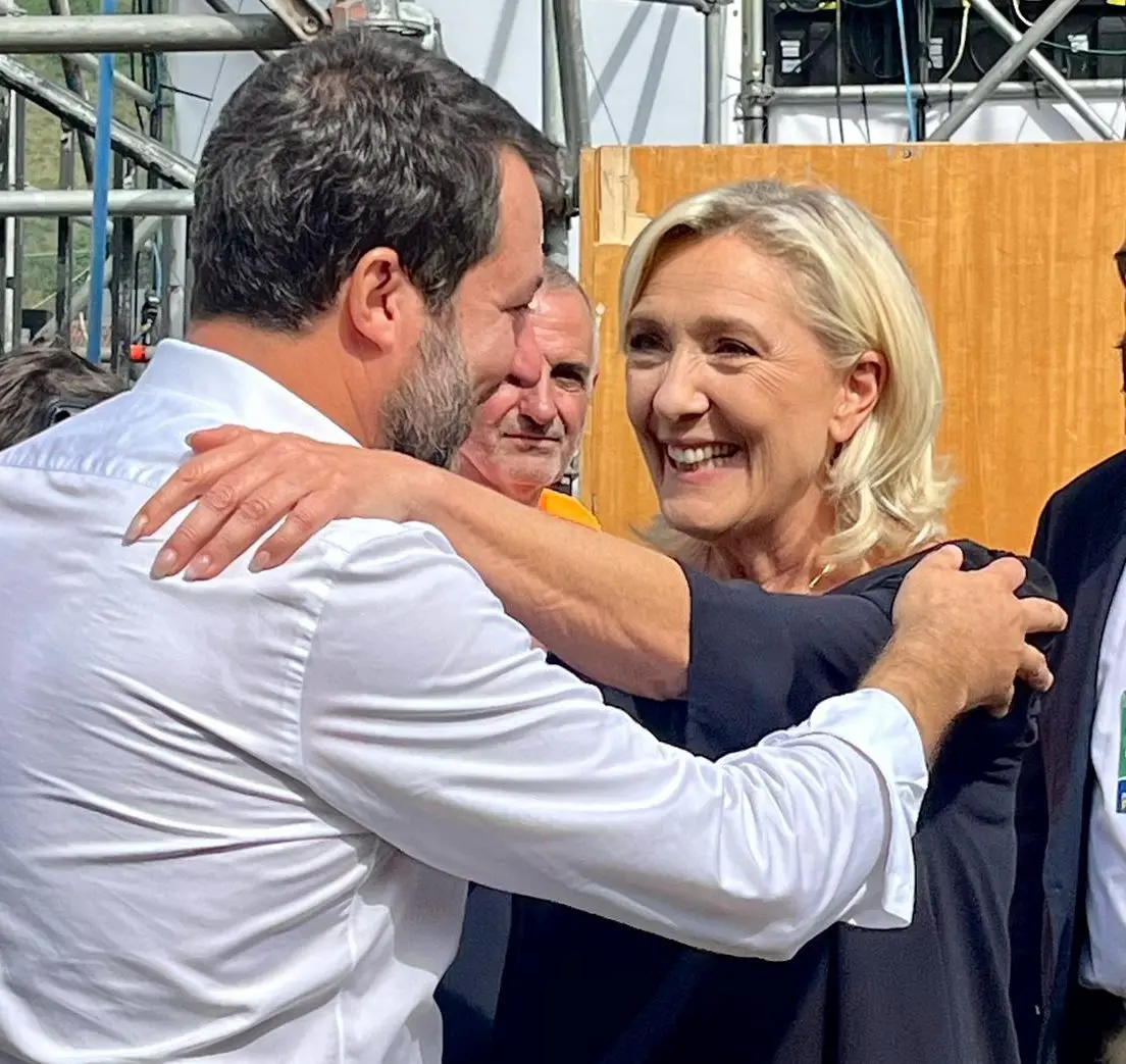 “Ringrazio una donna coraggiosa come Marine Le Pen che contro tutto e tutti rappresenta il primo partito di Francia. E se dovremmo scegliere tra Macron e Le Pen, non avremo nessun dubbio: tutta la vita con Marine Le Pen”, ha detto ancora Salvini.
