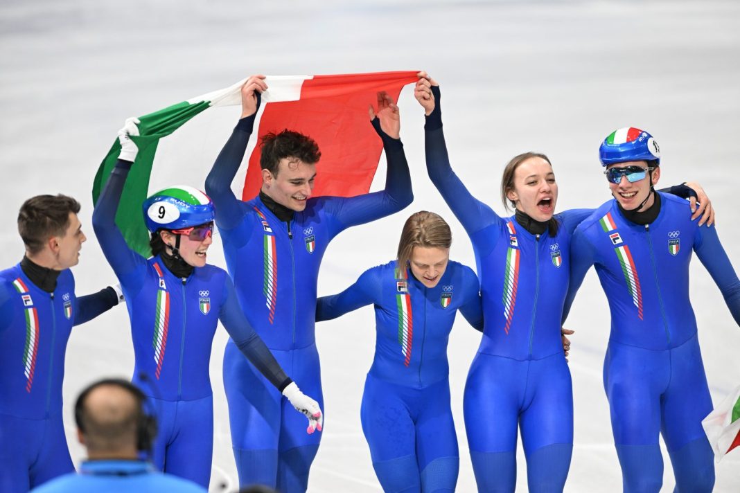 MILANO (ITALPRESS) – Tripudio tutto azzurro al Forum di Assago, dove l’Italia conquista la medaglia d’oro della staffetta mista dello short track e la sua decima medaglia (seconda d’oro) nei Giochi Olimpici di Milano-Cortina 2026. Elisa Confortola, Arianna Fontana, Thomas Nadalini e Pietro Sighel scavalcano la Cina con una grandissima manovra nella seconda metà di gara, scappano via e si rendono imprendibili, dominando la prova con due decimi sulla prima inseguitrice. L’oro è dell’Italia col tempo di 2.39.019, argento al Canada e bronzo al Belgio. Vano il record olimpico degli olandesi (2.35.537) nella finale B, non valida per le medaglie. Salgono così a 12 le medaglie olimpiche per Arianna Fontana, sempre più nella storia. Per l’Italia è la decima in questa edizione, la seconda d’oro.