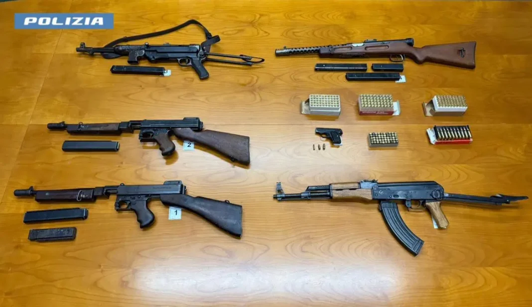 I poliziotti del commissariato Legnano e Busto Arsizio, in seguito a riscontri informativi, sono venuti a conoscenza di un imminente incontro tra i due uomini, finalizzato alla cessione di armi da guerra. Gli agenti hanno notato il 41enne, a bordo di un furgone, uscire dalla propria abitazione, per poi incontrare, il 49enne, giunto a bordo di un’utilitaria. Dopo un breve colloquio, hanno fatto accesso, con i propri veicoli, in un complesso condominiale per poi uscirvi dopo pochi minuti e dirigersi in direzioni diverse. I poliziotti hanno seguito i due, riuscendo a intercettare il furgone, guidato dal 41enne, nei pressi di un centro commerciale a Garbagnate Milanese. All’interno del veicolo sono state rinvenute e sequestrate due pistole mitragliatrici Thompson calibro 45, entrambe classificate come armi da guerra, una pistola mitragliatrice MP40 calibro 9, classificata come arma da guerra, un fucile Beretta modello Moschetto calibro 38 automatico, due calcioli per impugnatura a spalla e 33 cartucce calibro 9. Inoltre, presso il domicilio del 41enne è stato trovato un fucile d’assalto AK-47 di fabbricazione cinese, parti meccaniche e accessori per armi corte, oltre 120 cartucce di vario calibro e una pistola F.N calibro 6.35 risultata essere provento di furto in abitazione a Milano lo scorso dicembre.